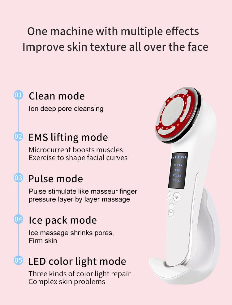 1. Multifunctional skin rejuvenation beauty instrument, cold compress + hot compress + EMS microcurrent + color light + vibration massage, so that you can have beauty salon-level skin care at home.