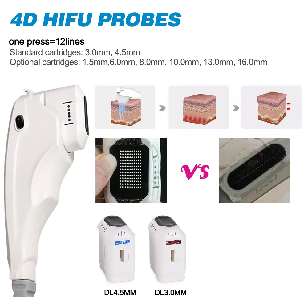of skin. The 4D probes of different depths (1.5mm, 3.0mm, 4.5mm) can accurately focus the energy on the epidermis,